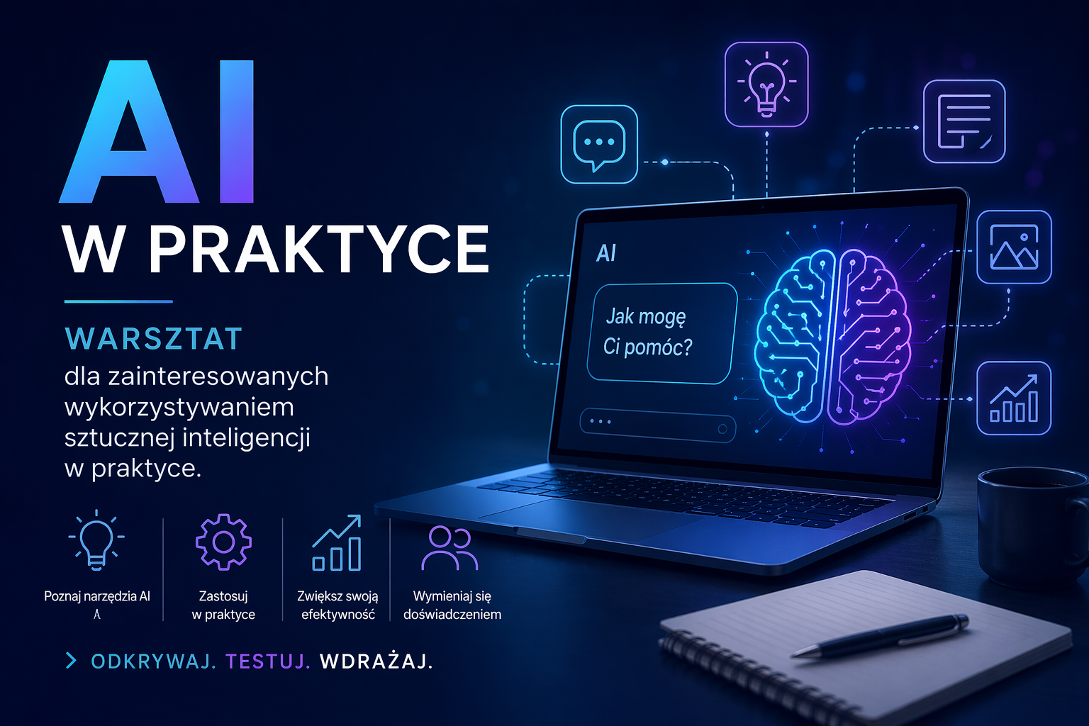 Warsztat skupia się na planowaniu projektów, przygotowaniu dokumentów, promocji inicjatyw oraz pielęgnowaniu lokalnego dziedzictwa z wykorzystaniem narzędzi AI.