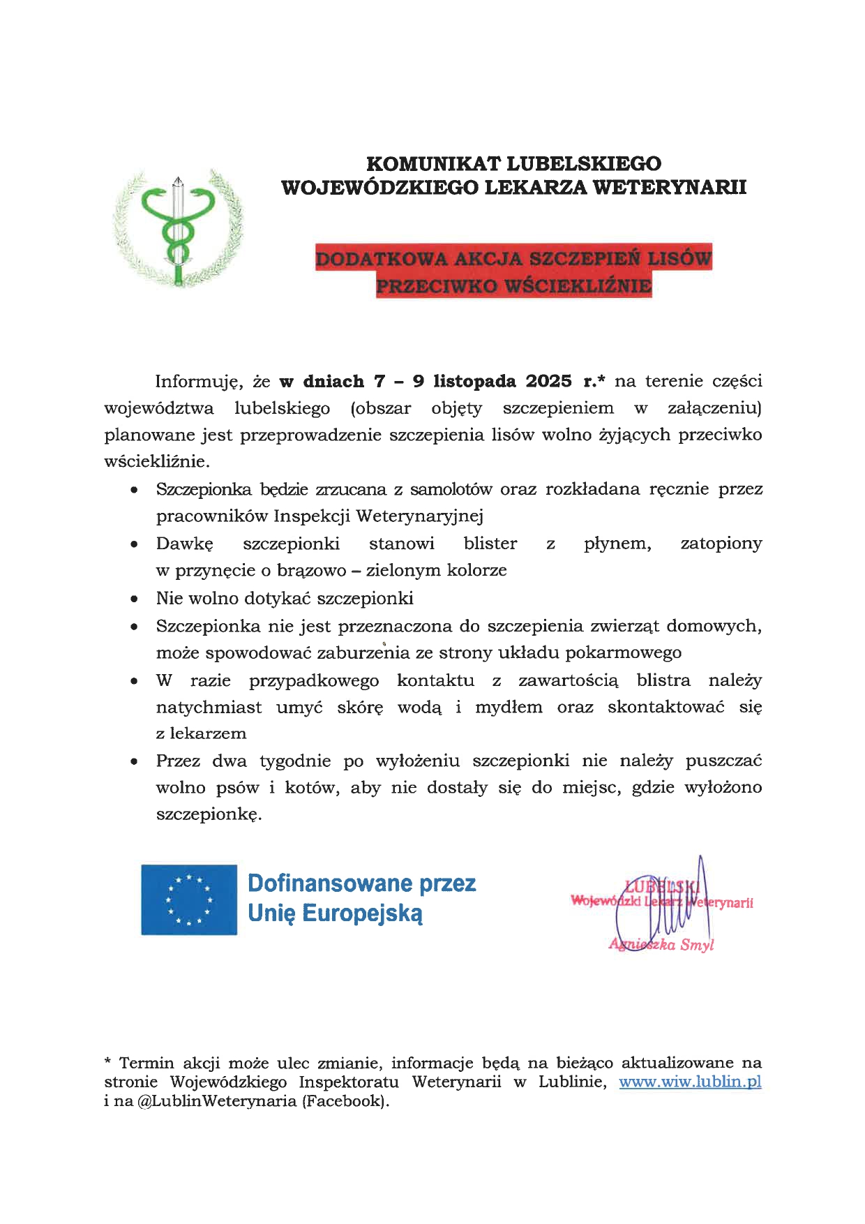 KOMUNIKAT LUBELSKIEGO WOJEWÓDZKIEGO LEKARZA WETERYNARII