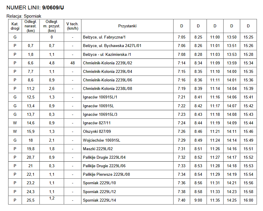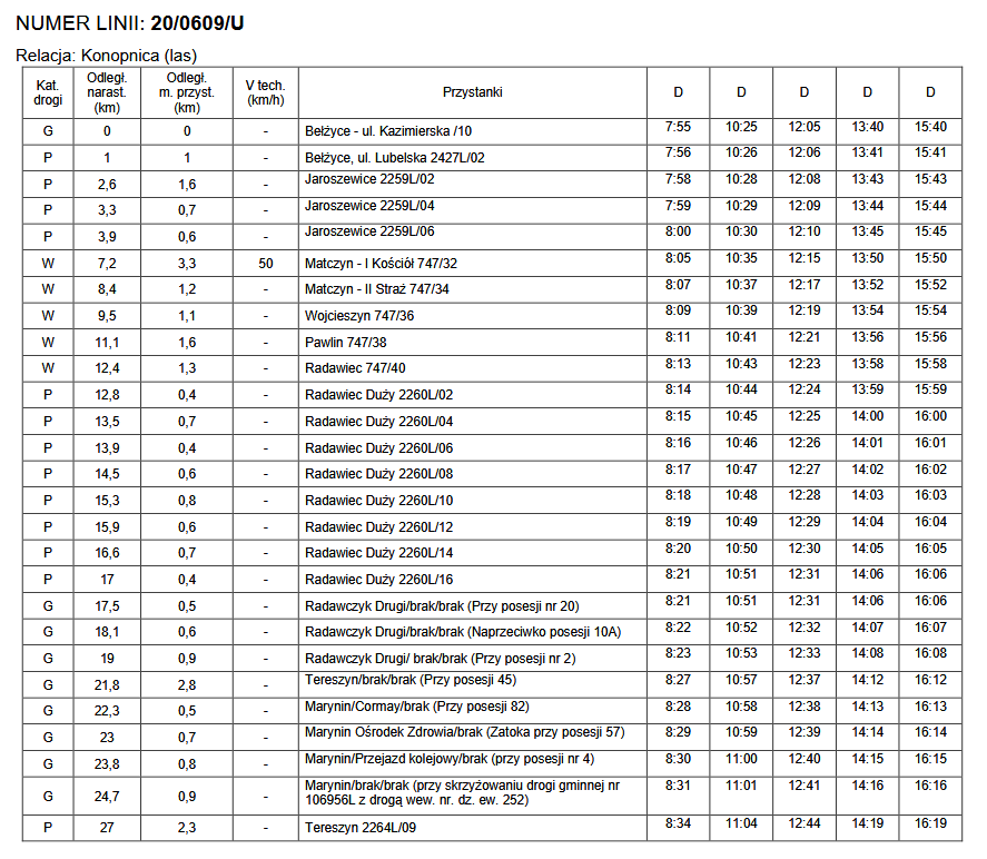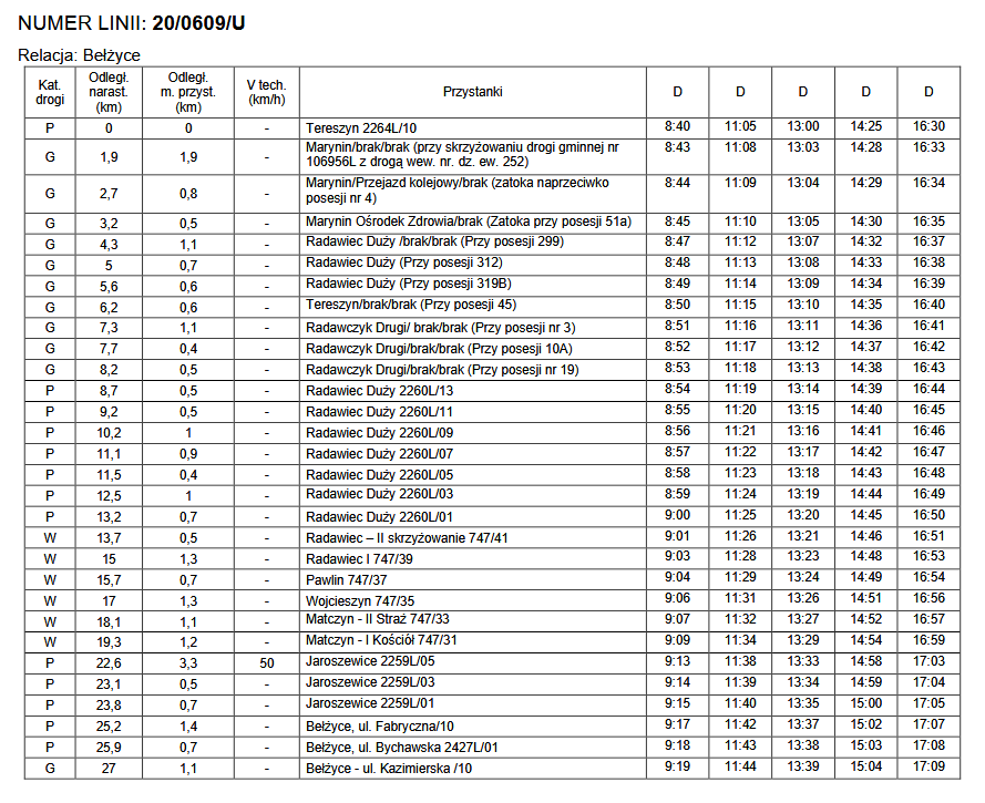 Rozkłady jazdy linii komunikacyjnych o charakterze użyteczności publicznej po terenie gminy